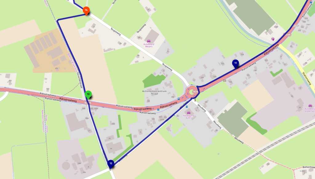 Schooiersdiek, de huidige Teugseweg. Aan je rechterkant zie je een laag stuk weiland.