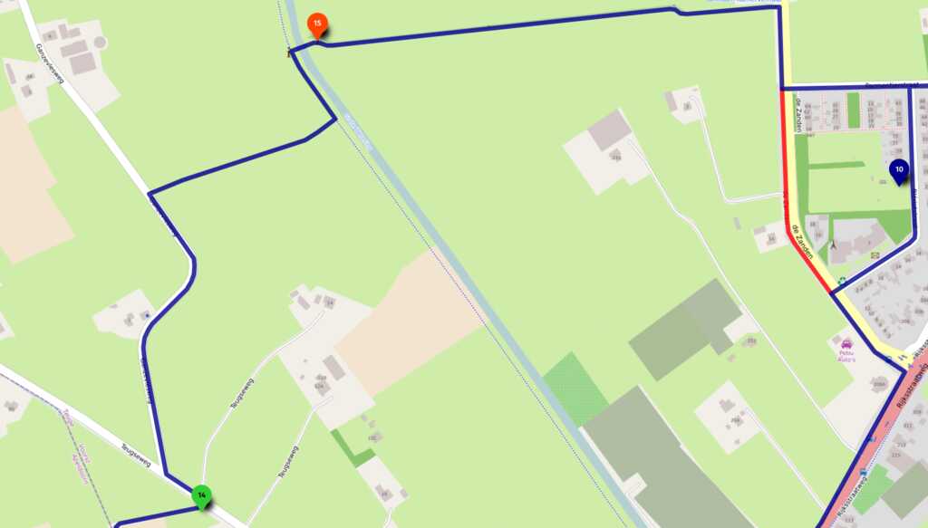 Na de bocht naar rechts en naar links kun je rechtsaf het fietspad op. Ga aan het einde naar links en vervolgens rechts het bruggetje over naar nummer 15.