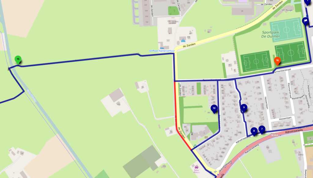 Volg het fietspad en sla aan het einde rechtsaf. Sla vervolgens links af de Parmentierstraat in. Ga bij de voetbalvelden het paadje links in naar nummer 16.