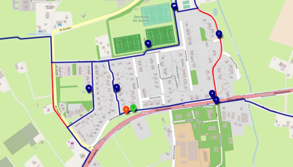Je staat hier op de “Oude” Rijksstraatweg en kijkt richting de “nieuwe” Rijksstraatweg. In de jaren ‘50 zijn een aantal bochten weggehaald door er een nieuwe weg naast te leggen. De oude en nieuwe weg werd gescheiden door haagbeukheggen, maar deze zijn in de loop van de tijd weggehaald, waarschijnlijk om zichtbaarheid voor het steeds sneller wordende verkeer te verbeteren.